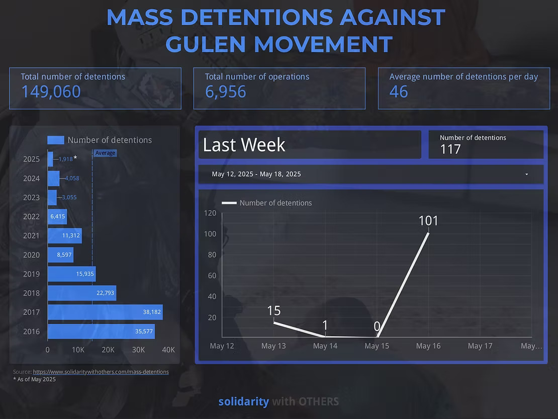 Throughout the week, prosecutors ordered the detention of at least 117 people over alleged links to the Gülen movement. In October 2020, a UN Working Group on Arbitrary Detention (WGAD) opinion said that widespread or systematic imprisonment of individuals with alleged links to the group may amount to crimes against humanity. Solidarity with OTHERS has compiled a detailed database to monitor the Gülen-linked mass detentions since a failed coup in July 2016.