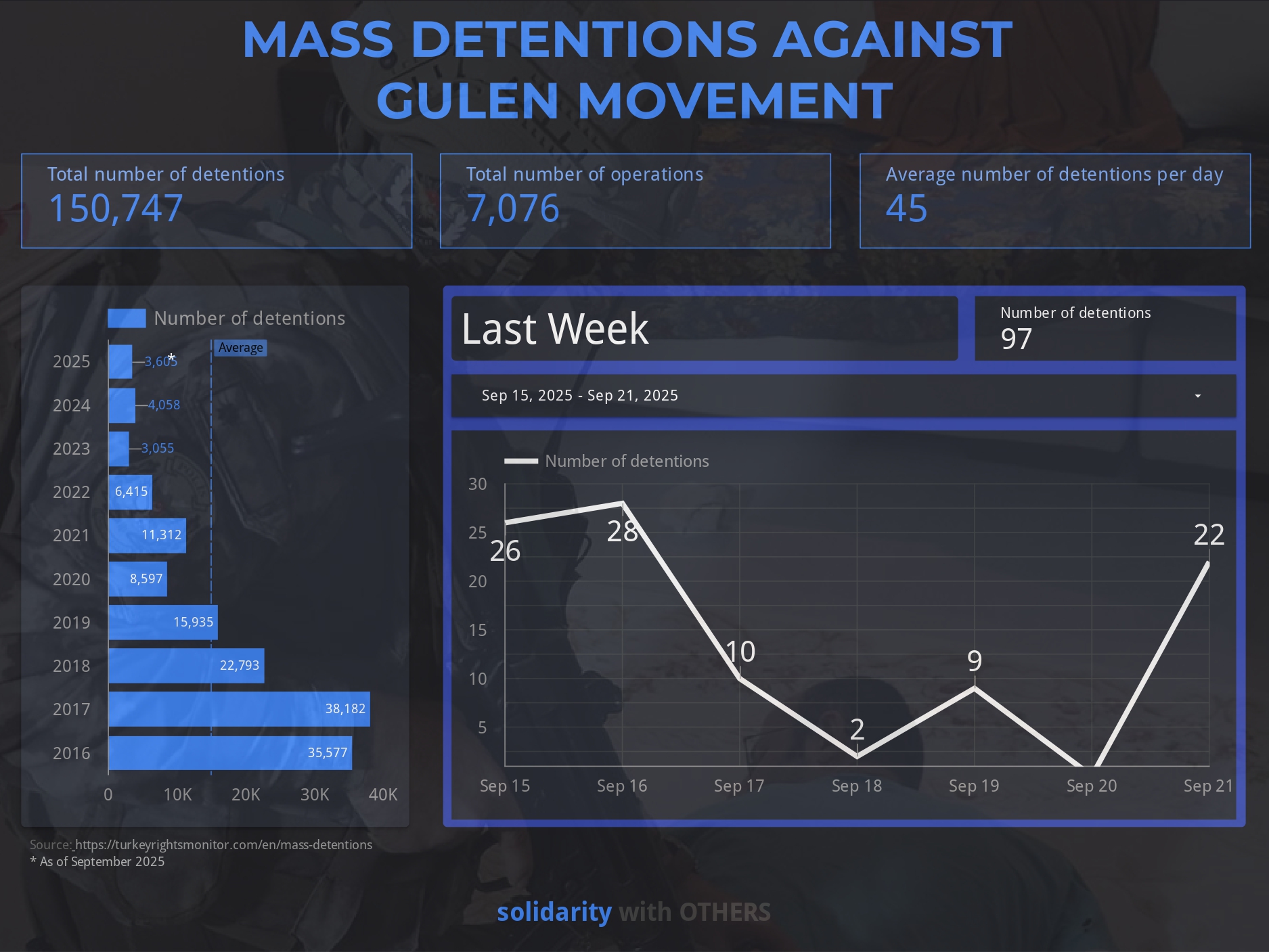 17 September: Turkish prosecutors detained 31 people in two operations this week over alleged Gülen movement ties in the military—21 in Konya-led raids across 17 provinces and 10 navy officers in Ankara—relying on “payphone investigations” that presume guilt from call sequences without content evidence, part of a years-long purge that has seen over 126,000 convictions since 2016.