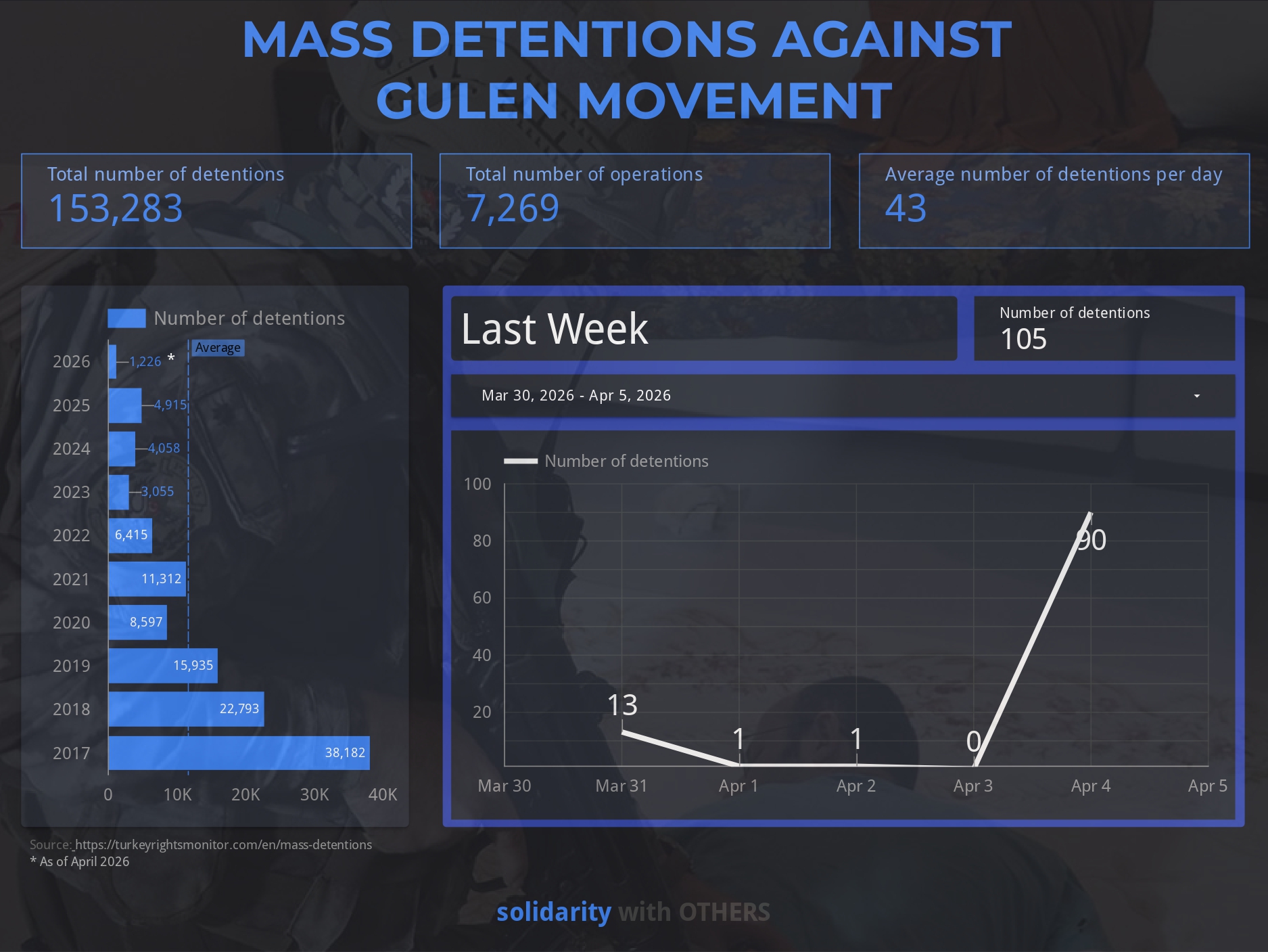 Throughout the week, prosecutors ordered the detention of at least 105 people over alleged links to the Gülen movement. In October 2020, a UN Working Group on Arbitrary Detention (WGAD) opinion said that widespread or systematic imprisonment of individuals with alleged links to the group may amount to crimes against humanity. Solidarity with OTHERS has compiled a detailed database to monitor the Gülen-linked mass detentions since a failed coup in July 2016.