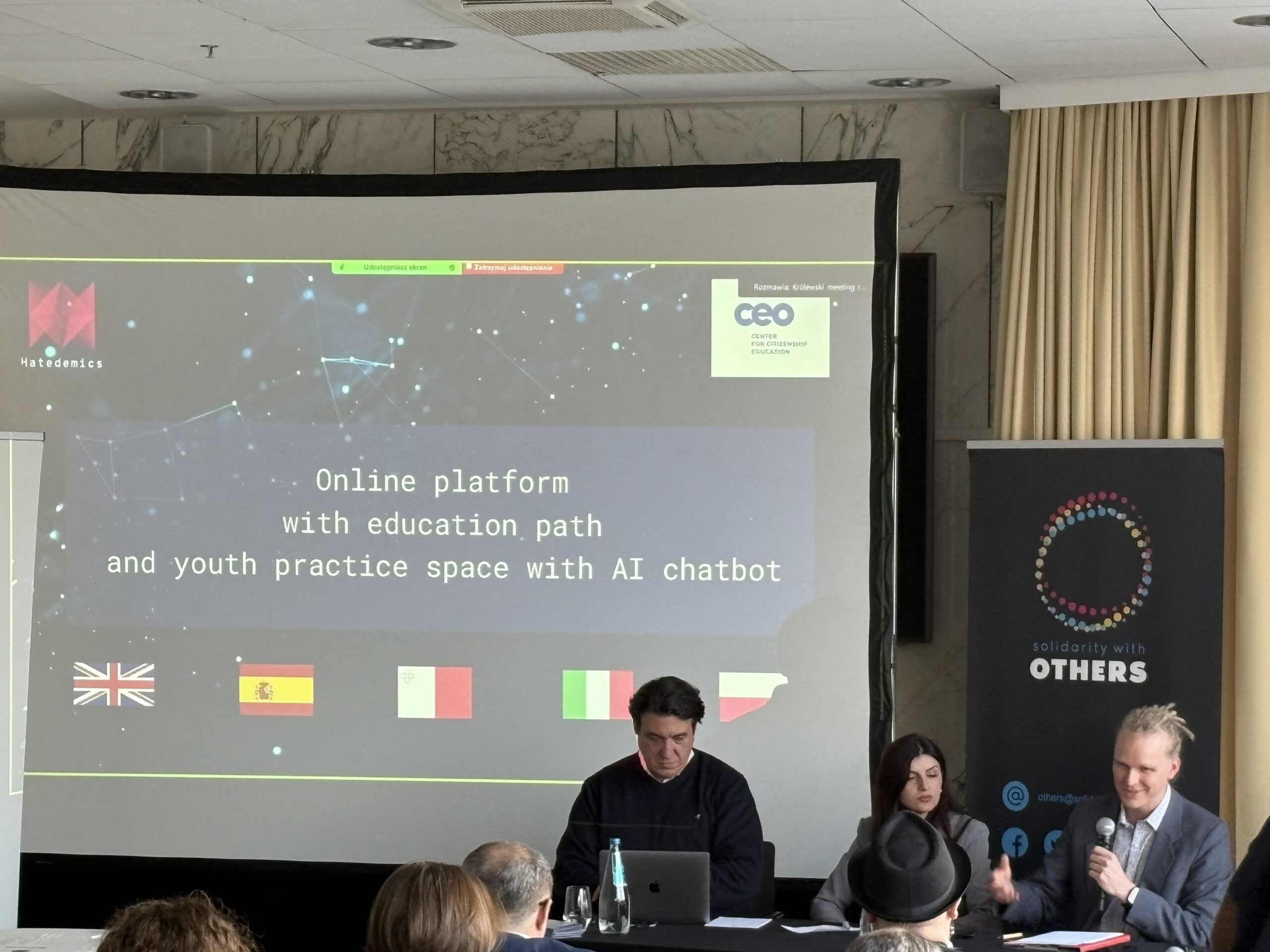 Mr. Jan Dąbkowski of the Centre for Citizenship Education (CCE) presented innovative approaches using artificial intelligence and digital platforms to combat hate speech in schools. As head of the Undiscrimination Education Team, Mr. Dąbkowski oversees programs that equip students and teachers with tools to identify, analyze, and respond to hate speech and disinformation.
