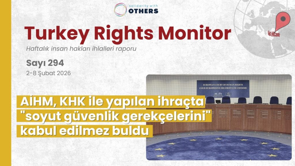 Download PDF 2-8 Şubat 2026 Keyfi Gözaltı ve Tutuklamalar Hafta boyunca savcılar en az 5 kişi hakkında Gülen hareketiyle irtibatlı oldukları gerekçesiyle gözaltı kararı verdi. Birleşmiş Milletler Keyfi Tutuklama Çalışma Grubu (WGAD) tarafından Ekim 2020’de yayımlanan bir görüş belgesinde söz konusu grupla bağlantılı olduğu iddia edilen kişilerin geniş çaplı ve sistematik olarak hürriyetinden mahrum bırakılmasının […]