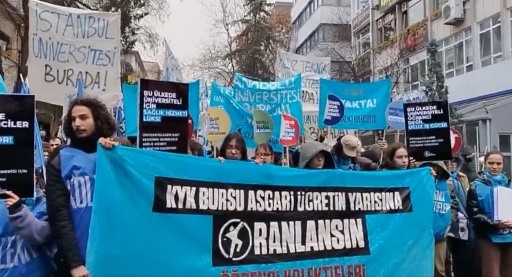 15 Aralık: KYK burslarının asgari ücretin yarısına (11.052 lira) yükseltilmesi talebiyle topladıkları 20 bin imzayı Meclis’e teslim etmek üzere Ankara’ya gelen Öğrenci Kolektifleri üyesi öğrenciler, parlamentoya yürürken polis tarafından engellendi; biber gazı kullanıldı ve biri çocuk olmak üzere 10 öğrenci gözaltına alındı.
