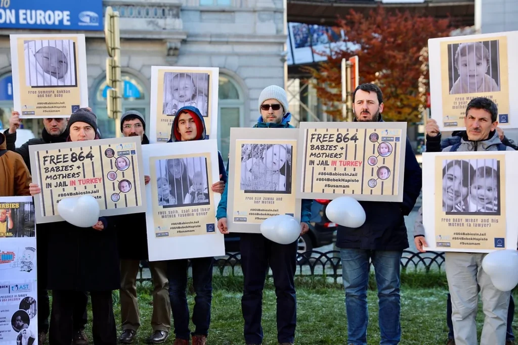 At the event, nearly 50 participants from across Europe displayed banners about the rights violations against children in Turkey, specifically those locked up behind bars alongside their mothers who are faced with politically motivated trials.